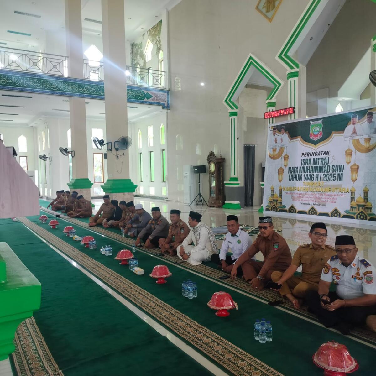 Konawe Utara, Sultraupdate. id – Memaknai Kembali hikmah dari peristiwa Isra’ dan Mi’raj yang dilakukan oleh Nabi Muhammad SAW sebagai suri tauladan, Pemerintah Kabupaten (Pemkab) Konawe Utara (Konut) memperingati Isra’ Mi’raj Nabi Muhammad SAW 1446 Hijriah di Masjid As-Salam, Senin, 3 Februari 2025.