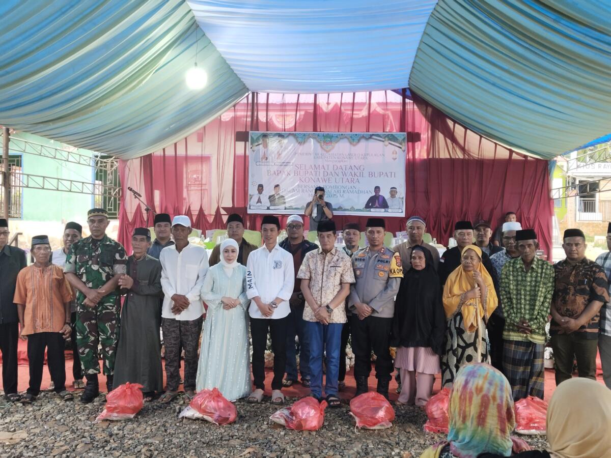 Dalam kesempatan tersebut, sebagai wujud kepedulian terhadap masyarakat kurang mampu, Bupati Konut H. Ikbar secara simbolis menyerahkan bantuan sebanyak 60 paket sembako.