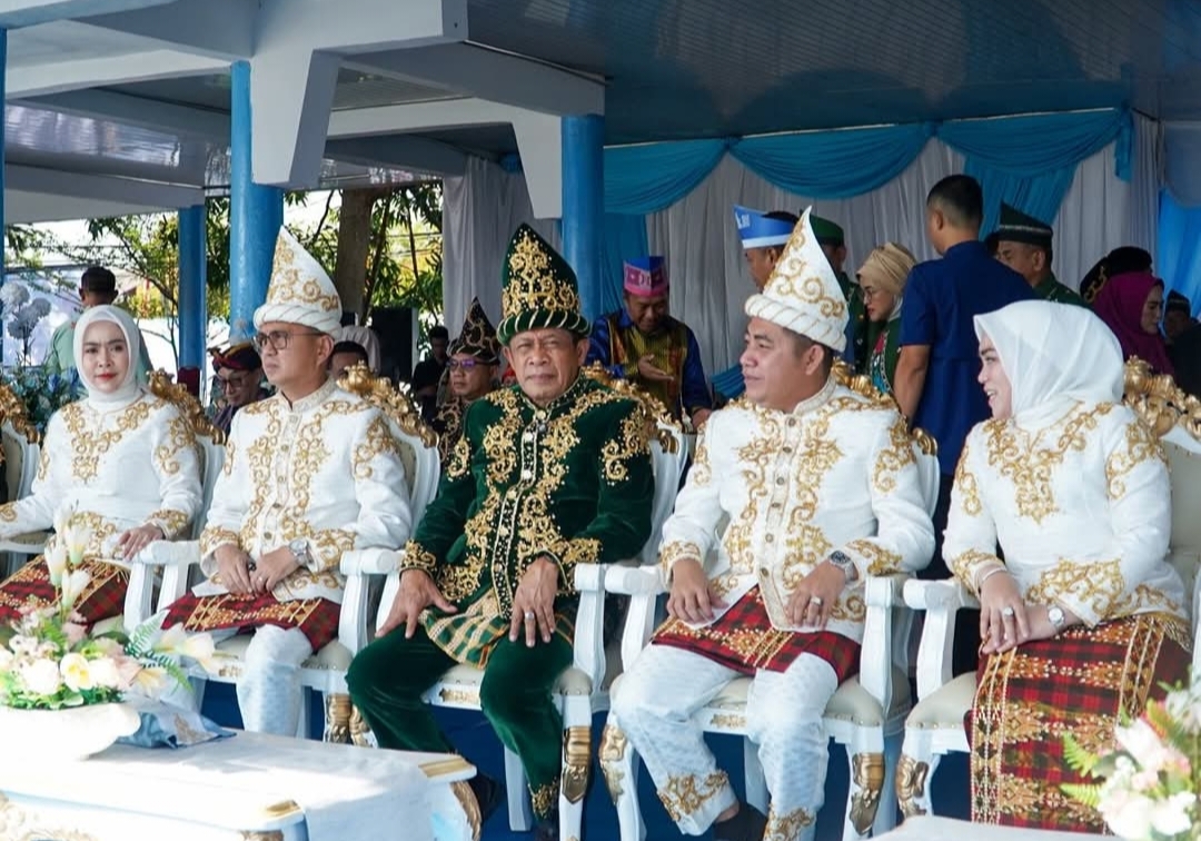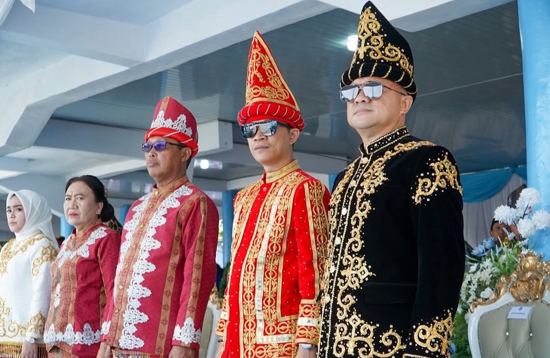 Dalam momen penuh khidmat tersebut, Bupati Konawe Utara tampil mengenakan pakaian adat Tolaki berwarna merah menyala dengan balutan sulaman emas yang memancarkan wibawa dan kecintaan terhadap budaya daerah. Penampilan itu menjadi simbol penghormatan terhadap nilai-nilai kearifan lokal yang terus dijaga di tengah arus modernisasi.