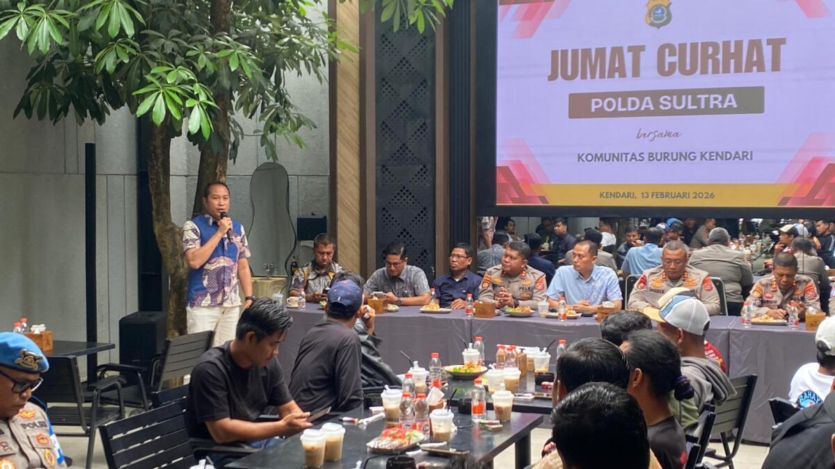 KENDARI. Sultraupdate. id– Polda Sulawesi Tenggara kembali menunjukkan komitmennya dalam membangun komunikasi terbuka dengan masyarakat melalui program “Jumat Curhat”. Kali ini, kegiatan tersebut digelar bersama Komunitas Burung Kendari di Maimo Cafe & Bistro, Jumat (13/2/2026).