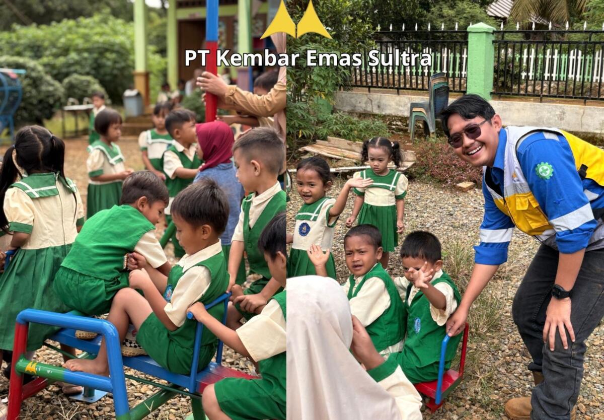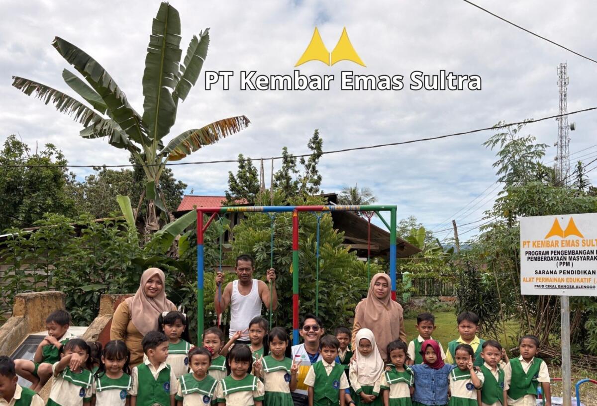 Konawe Utara. Sultraupdate. id- Komitmen PT Kembar Emas Sultra (PT KES) dalam mendorong kemajuan pendidikan kembali diwujudkan melalui aksi nyata. Lewat Program Pengembangan dan Pemberdayaan Masyarakat (PPM), perusahaan ini menyerahkan bantuan Alat Permainan Edukatif (APE) luar ruangan kepada PAUD Cikal Bangsa Alenggo. Senin, (13/04/2026).